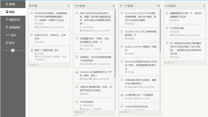任務管理是企業協同的重要組成部分。 任務管理是企業內部事務協同的重要工具,與傳統的OA有類似之處,都是推動企業內部事務有效快速的推進,但之前存在不同之處,OA是屬于剛性流程化的管理,側重于流程與規范,任務管理側重于人員、事務之間的協同,側重于靈活度與協同性上 從靈活度上看,可以用于企業各種事務的管理與處理,比如客戶進展管理、開發進度、產品設計等