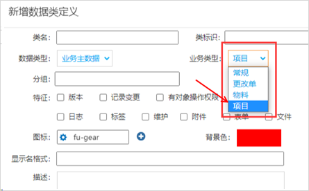 因為,我們是為Gungho的項目管理做配套,所以在mobox建立數據模型的時候,有類型需要選擇? ,業務類型必須是 “項目”
