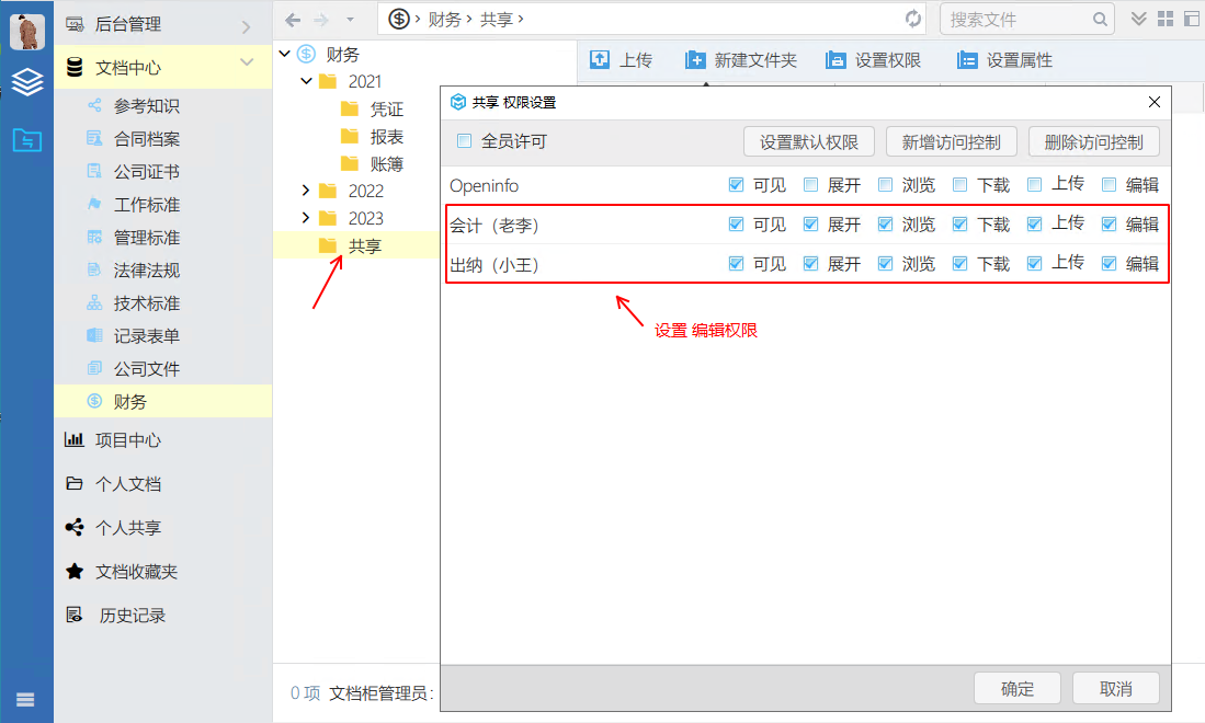 2、設定具有編輯權限的用戶群體;(比如 會計、出納等用戶具有編輯權限)