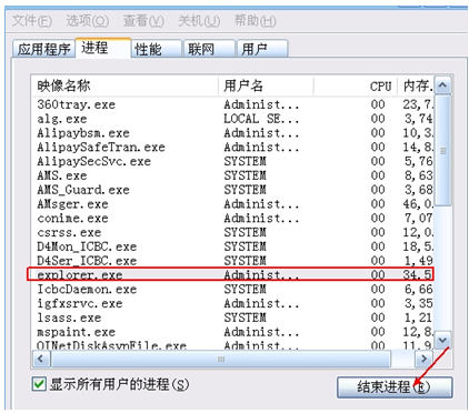 2、通過windows 任務管理器將 explorer.exe 重新啟動起來