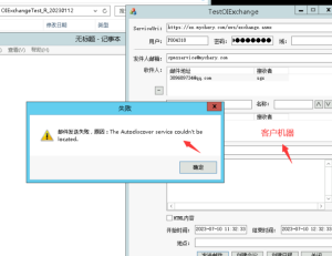 exchange發送郵件提示T he Autodiscover service couldn’t belocated.