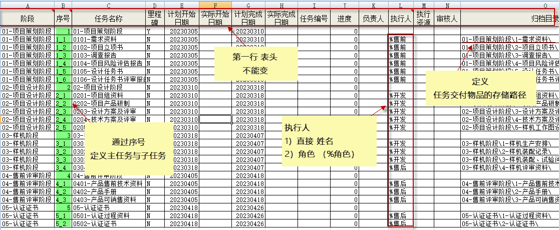 我們提供Excel模板文件,用戶方在我們的Excel文件內進行項目計劃編制,編制完成后,Gungho通過csv方式將計劃導入。這個方式好處是:用戶在沒有上系統前,項目計劃就是用Excel編制的,現在只是在我們要求的格式上編制,完全繼承了原先的使用習慣。另外,Excel編制項目計劃會更方便一些。