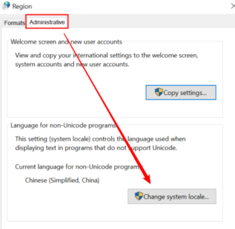 2)Administrative – Change system locale